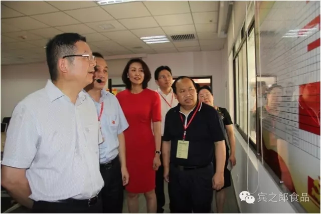 蔡建和一行先后參觀了賓之郎榮譽(yù)室、賓之郎自動化工藝制作車間、賓之郎食品安全風(fēng)險防控室、賓之郎企業(yè)文化宣傳長廊和賓之郎黨群服務(wù)中心(黨群工作部、黨員會議室、黨群文娛室、黨群活動中心、心靈驛站等場所),詳細(xì)了解了賓之郎黨員組織管理情況、黨群活動開展情況及“兩學(xué)一做”專題培訓(xùn)教育和企業(yè)經(jīng)濟(jì)發(fā)展情況。