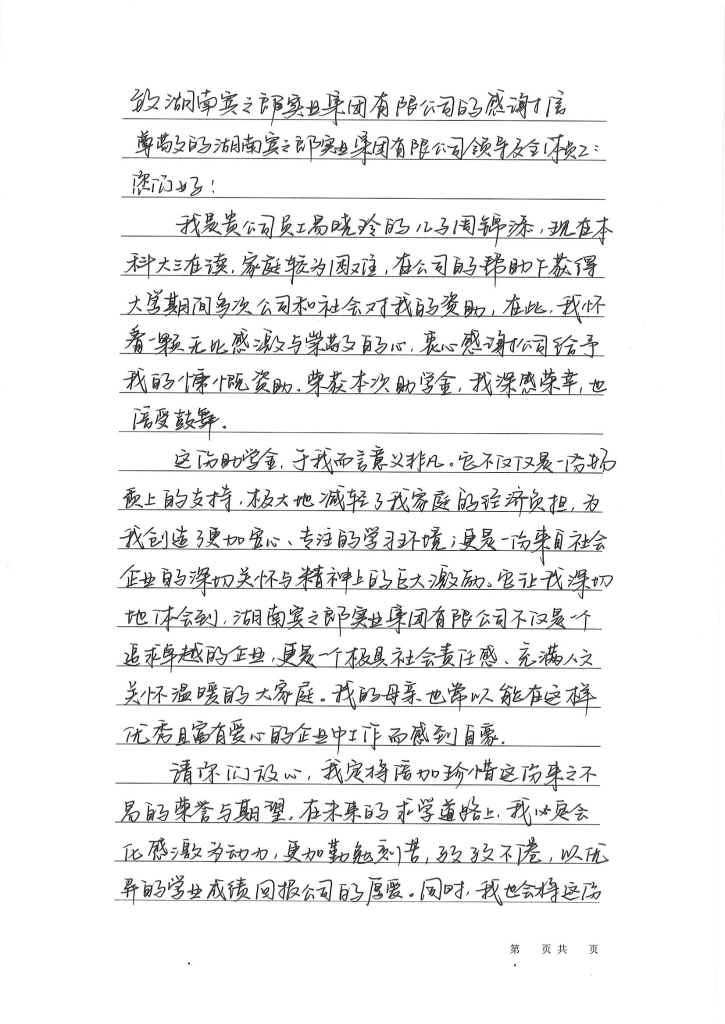 “賓之郎·助學(xué)勵(lì)志獎(jiǎng)”是湖南賓之郎食品科技有限公司實(shí)現(xiàn)“企業(yè)發(fā)展、員工幸福、社會(huì)和諧”企業(yè)價(jià)值觀所設(shè)立的獎(jiǎng)項(xiàng)。致力于解決優(yōu)秀學(xué)子因家庭貧困而不能完成學(xué)業(yè)的困難,幫助和鼓勵(lì)他(她)們奮發(fā)圖強(qiáng),通過學(xué)習(xí)改變命運(yùn),構(gòu)筑美麗人生。