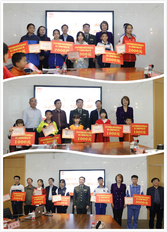 湘潭市政協(xié)副主席周佩珞宣讀《關(guān)于表彰2020年湘潭市教育發(fā)展基金·賓之郎助學(xué)勵(lì)志獎(jiǎng)獲獎(jiǎng)學(xué)生通報(bào)》,2020年,共有349名同學(xué)獲得“賓之郎·助學(xué)勵(lì)志獎(jiǎng)”表彰獎(jiǎng)勵(lì)。他表示,希望獲獎(jiǎng)同學(xué)以堅(jiān)強(qiáng)的意志,砥礪奮斗,處逆境而立志成才;也希望廣大中小學(xué)生以獲獎(jiǎng)學(xué)生為榜樣,樹立遠(yuǎn)大理想,發(fā)奮學(xué)習(xí),做有理想、有志向、有擔(dān)當(dāng)?shù)男聲r(shí)代好少年,為實(shí)現(xiàn)中華民族偉大復(fù)興而拼搏奮進(jìn)。