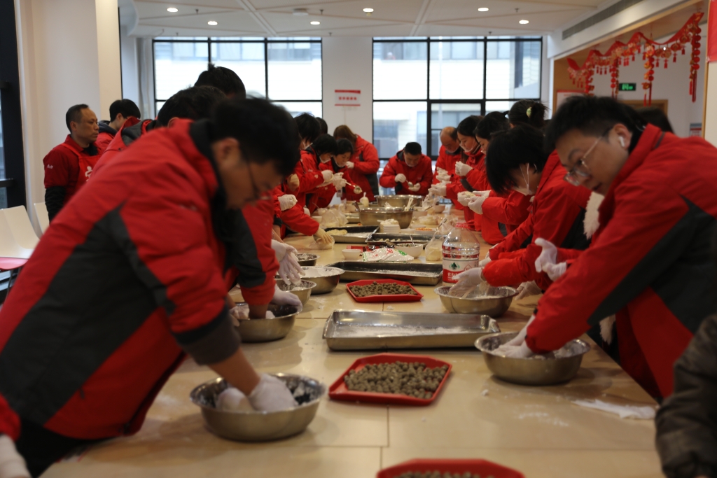 上午九點(diǎn)活動正式拉開帷幕,包元宵與包餃子環(huán)節(jié)同步展開。全體員工按照既定分組,井然有序地展開協(xié)作,揉面、搟皮、包餡等環(huán)節(jié)緊密銜接。賓之郎員工以精益求精的工匠精神,共同營造了濃厚的節(jié)日氛圍,攜手迎接元宵佳節(jié)的到來。